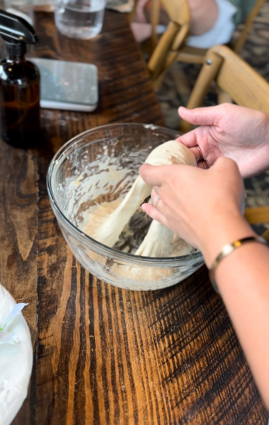 "I didn't even like sourdough bread before taking this workshop but Oak + Ollie changed that for me! All the sourdough I've ever had before was just too sour and hard. My friend convinced me to take the class which I only did to hang out with her and boy was I impressed! The workshop was at a vineyard and was set up very nicely. All the materials were included. Sample sourdough along with fruits, cheeses and crackers were included. The sourdough here was not too sour and not hard. It was perfect! Afterwards you get to take home some starter and a dough loaf to bake at home. I have made countless sourdough loaves now and even experimented with sourdough pasta, swirl bread, soup bread bowls, crackers, etc. Taking this class has really opened up my eyes to a whole new world of sourdough. Dominique is there for you to answer any questions along the way and give you another starter if need be. You are learning from the best of the best invaluable sourdough skills while making fun memories. Take the class, it's well worth it!" — Courtney Definbaugh